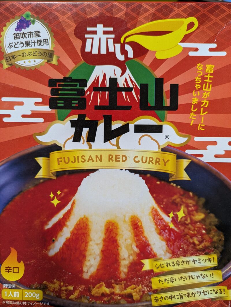 山梨県の道の駅で見つけて一目惚れで購入しました。地元の場所を表現したまさにご当地カレーって感じでいいですね!!