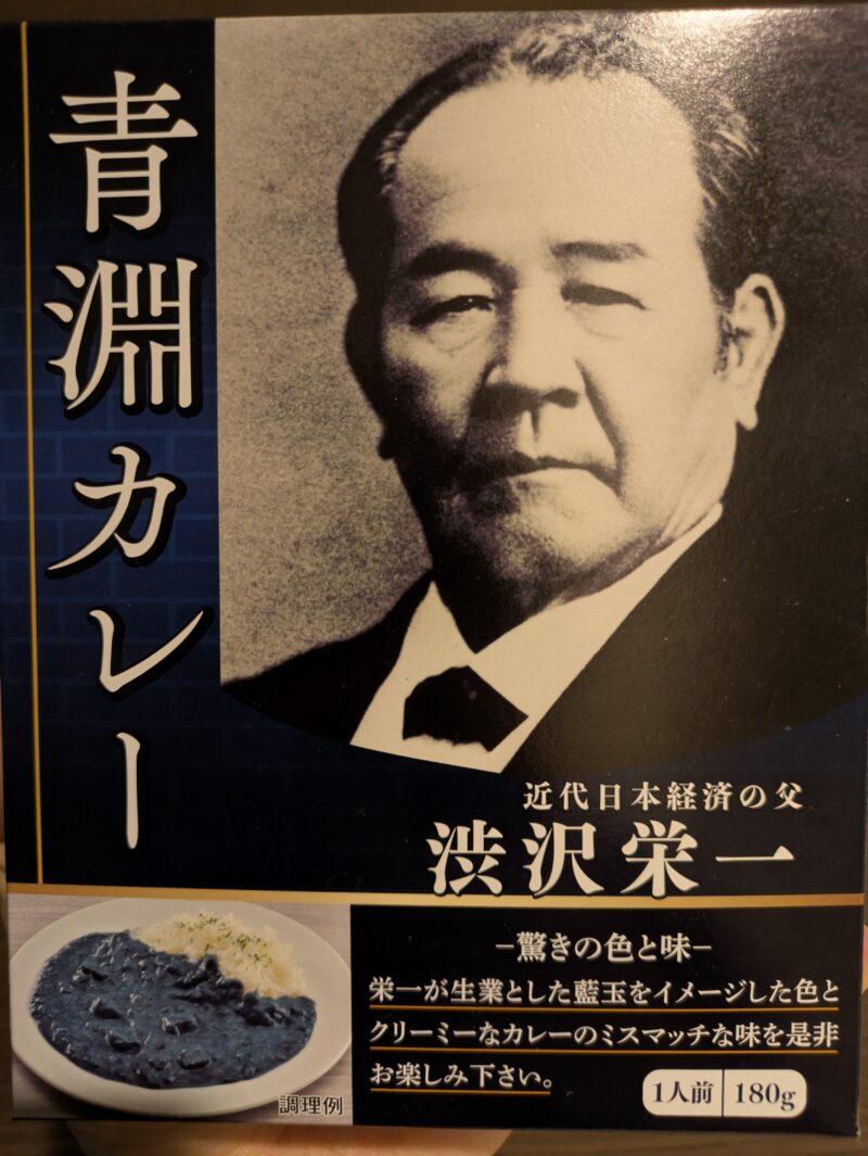 新一万円の顔である渋沢栄一出身の埼玉県で買えるカレーです。渋沢栄一の事業の1つである藍玉の色にしたカレーらしいです。私は藍玉というのをこれで初めて知りました。