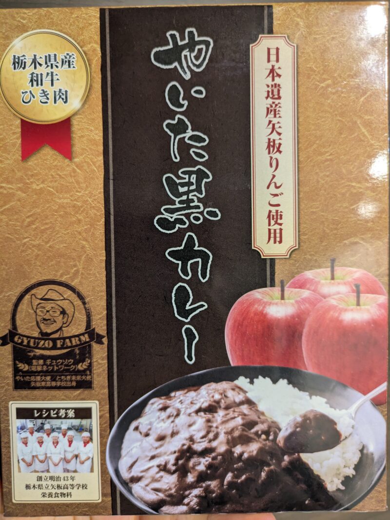 【道の駅やいた】で売っていたご当地カレーです。なんでも日本遺産に認定された矢板りんごと栃木産和牛ひき肉を使用しいてるらしいです。期待が高まります。